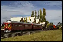 The Tenterfield railway station is a heritage-listed closed railway station and now railway museum located on the Main Northern line, Tenterfield, Tenterfield Shire, New South Wales, Australia. It served the town of Tenterfield and opened on 1 September 1886 when the line was extended from Glen Innes. It was the terminus of the line until it was extended to Wallangarra on 16 January 1888.[1] The railway station was designed by William Murray under the direction of John Whitton, the Chief Engineer of NSW Government Railways, and built during 1886. It is also known as Tenterfield Railway Station group. The property was added to the New South Wales State Heritage Register on 2 April 1999.[2][3] The station has one platform with two loops.