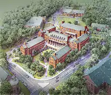 In 2014, the university began construction of the Business Learning Community campus to house the entirety of the Terry College of Business in one location on North Campus.[27] The 306,000-square-foot six building campus provides needed additional adaptable space and technology for teaching and teamwork. Phase I, known as Correll Hall, opened for classes in Fall 2015. It houses classrooms for graduate programs, a graduate commons, a business innovation lab, multiple project team rooms, interview suites, the dean's office, and a café. Phase II was completed in 2017 and features two large auditoriums, 12 classrooms, a trading room, a behavioral lab, and an undergraduate commons with a south-facing veranda. Phase III was completed in 2019 and comprised the last two buildings in the Terry Business Learning Community housing 10 classrooms, staff offices, and conference rooms. Beyond the Community is Studio 225, on West Broad Street in downtown Athens, that is home to the Entrepreneurship Program. The center is part of the university's Innovation District.[28]