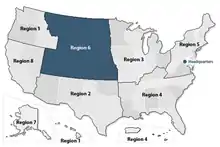 The regions of the Fish and Wildlife Service. Region 6 is highlighted.