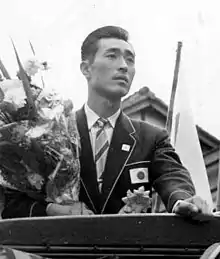 Born in Jōge, Hiroshima, Kogake began to compete in the triple jump while at high school – the track and field event had gained much popularity in Japan through Olympic gold medallists Mikio Oda, Chūhei Nambu, and Naoto Tajima.[2] He graduated from Waseda University in Tokyo and continued to practice the event.[3] At the 1956 Japanese Championships, which served as the Olympic Trials, he jumped what was then considered a world record distance of 16.48 m, adding some 20 cm onto the previous mark (Adhemar da Silva had jumped 16.56 m in March 1955, but this had been achieved in Mexico City and had been aided by the high altitude).[3] Kogake's success came with a penalty in the form of an ankle injury which impeded his performance at the 1956 Melbourne Olympics. He finished in eighth position, with a best jump of 15.64 m, while da Silva won the gold medal with a mark of 16.35 m.[4]