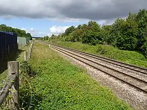 The Cheltenham & Great Western Union Railway (C&GWU) had been authorised on 21 June 1836 to build a line from a junction with the Great Western Railway (GWR) at Swindon to Cheltenham via Kemble, with a branch from the latter point to Cirencester.[3] The first section of the C&GWU from Swindon to Cirencester opened on 31 May 1841; there were no stations between Minety and Cirencester.[4][2] A junction was later constructed at Kemble, with it, the line from there to Gloucester was opened on 12 May 1845, and the first station on the new line was at Tetbury Road.[5] A station was also built at the junction, but this had no road access, being intended for interchange purposes.[6][7] In the meantime, the C&GWU had been purchased by the GWR on 1 July 1843.[8][2]