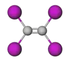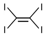 Tetraiodoethylene (TIE), or diiodoform, is the periodinated analogue of ethylene with the chemical formula C2I4. It is a decomposition product of carbon tetraiodide and diiodoacetylene.[5] It is an odourless yellow crystalline solid that is soluble in benzene and chloroform, and insoluble in water.[2] It has been used as an antiseptic and a component in pesticide and fungicide formulations.[6][7]