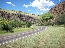 Blackfoot Drive merges back with the route as SH 17 leaves town continuing northward through Limpia Canyon in the Davis Mountains with a maximum speed limit of 55 miles per hour (89 km/h). In Limpia Canyon, the road has many curves, some with recommended speeds as low as 40 miles per hour (64 km/h) as indicated by warning signs. There are also several picnic tables in the canyon followed by one large picnic area just before reaching Wild Rose Pass. About 2.4 miles (3.9 km) past this pass, the speed limit increases to 75 miles per hour (121 km/h). The route remains a two-lane road, but from this point onward there are places where passing lanes occur.