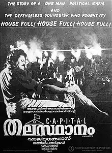 Thalasthanam (transl.The Capital) is a 1992 Malayalam-language crime action film written by Renji Panicker and directed by Shaji Kailas. The film stars Suresh Gopi in the lead role, along with Geetha, Narendra Prasad, Monisha, M. G. Soman, K. B. Ganesh Kumar and Vijayakumar in supporting roles. The film explores the concepts of campus politics and the impact of anti social elements in students.[1][2]