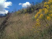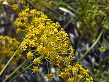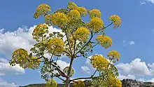 Poison from the roots of Thapsia villosa is traditionally used by fishermen in Catalonia as an ichthyotoxin for stunning fish, making them easier to catch.[9][19] Extracts from the root bark of Thapsia villosa have been used since ancient times as a yellow dye.[8] In the 18th century, yellow dye from the flowers were used to color wool.[8][20] Thapsia villosa are also grown as ornamentals for their bright yellow flowers.[21]