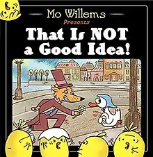 That Is NOT a Good Idea! is a 2013 children's picture book written and illustrated by Mo Willems. First published by Balzer + Bray, it is about a plump fowl that meets a fox, and is persuaded to follow the fox to its house in the woods, all the while being observed, as if on a movie screen, by a group of young birds that regularly shout the title words.