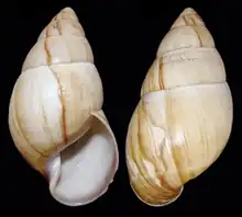 | apertural and abapertural view of the shell of Thaumastus flori Shell height 65.0 mm. | |