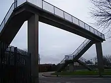 The footbridge overlooking the school (in the background)