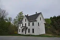 The entrance is sheltered by a portico with a low-pitch gabled roof, and is flanked by pilasters.[2] The house was originally attached via a connecting ell to a barn; both of these structures have been removed, leaving a flushboard outline of the ell on the right wall.