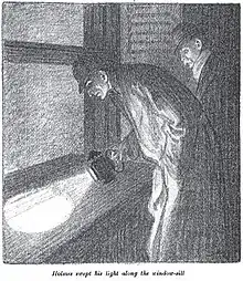 Holmes and Watson examine the window, 1908 illustration by Frederic Dorr Steele in Collier's