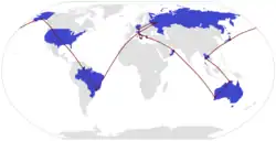 - ↑ This was a double leg with two Detours and two Roadblocks shown over two episodes. The placements listed for the first half are the order of the teams' arrival at the Pit Stop in Moscow.