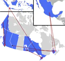 The Amazing Race Canada 6 (also known as The Amazing Race Canada: Heroes Edition)[1] is the sixth season of The Amazing Race Canada, a Canadian reality competition show based on the American series The Amazing Race. Hosted by Jon Montgomery, it featured ten teams of two, consisting of everyday Canadian heroes, in a race across Canada and the world.[2] The grand prize included a CA$250,000 cash payout, a trip for two around the world, and two 2018 Chevrolet Traverse Redlines.[2] This season visited six provinces, one territory, and two additional countries and travelled over 50,000 kilometres (31,000 mi) during eleven legs. Starting in Colwood, British Columbia, racers travelled through British Columbia, the Yukon, Indonesia, Ontario, Manitoba, Prince Edward Island, Mexico, New Brunswick, and Alberta before finishing in Banff, Alberta. New twists introduced in this season include the Blind Double U-Turn and U-Turns placed at Detour decision points. The season premiered on CTV on July 3, 2018,[3] with the season finale airing on September 11, 2018.