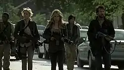 The Armory marks the first appearance of Colin Cunningham's character John Pope and Sarah Carter's character, Margaret. Pope is the leader of a post-apocalyptic gang and Margaret is a woman who used to be part of the gang. She helped Tom and his team escape after Pope holds them hostage.