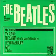 The other four Hamburg recordings featuring the Beatles were licensed to Atco Records and released in the US on an album called Ain't She Sweet in October of that year, similarly augmented by other musician's songs.[9] All eight existing recordings, expanded with four others songs by Tony Sheridan and The Beat Brothers, were compiled that same year by Polydor Records in Germany under the title The Beatles' First![10] and reissued in the UK in 1967.[11] This album was released in the United States in 1970 with the title In the Beginning (Circa 1960).[12]