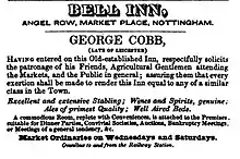 The cricketer William Clarke gave up his bricklaying job to become landlord of the Inn in 1812 before going on to marry the landlady of the Trent Bridge Inn, where he established the famous Trent Bridge cricket ground.[7]