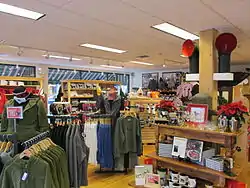 The Black Dog currently has many locations on Martha's Vineyard and one on the island of Nantucket, as well as in the mainland Massachusetts towns of Provincetown, Falmouth, Mashpee, Newburyport, Boston, and Chatham. They currently have two outlets in Wrentham, MA and Merrimack, NH. Outside of Massachusetts, they have stores in Newport, RI; Portland, ME; Kennebunkport, ME; Portsmouth, NH; Mystic, CT; Annapolis, MD; Savannah, GA; Charleston, SC; and Sarasota, FL.[12]