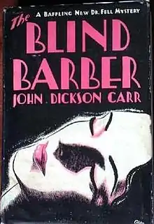 The Blind Barber, first published in October 1934, is a detective story by American writer John Dickson Carr, featuring his series detective Gideon Fell. It is a mystery novel of the type known as a whodunnit. This novel is generally felt to be the most humorous of Dr. Fell's adventures, somewhat echoing the farcical later adventures of Carr's Sir Henry Merrivale.[2]