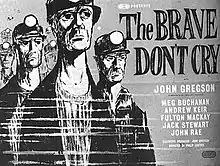 The Brave Don't Cry is a 1952 British drama film directed by Philip Leacock and starring John Gregson, Meg Buchanan and John Rae.[1] The film depicts the events of September 1950 at the Knockshinnoch Castle colliery in Scotland, where 129 men were trapped by a landslide (see Knockshinnoch Disaster September 1950). It was shot at Southall Studios and was also known by the alternative title Knockshinnoch Story. The filmmakers used actors from the Glasgow Citizens Theatre.[2] It was screened at the Venice Film Festival in September 1952.