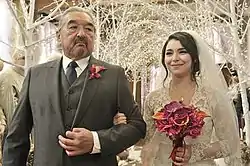 Rafe (Graham Greene walking Kristie (Nicole Muñoz) down the aisle