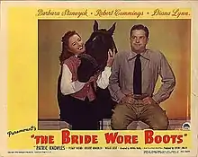 The Bride Wore Boots is a 1946 American romantic comedy film with Barbara Stanwyck in the title role, playing opposite Robert Cummings. A very young Natalie Wood is seen in the film, directed by Irving Pichel.[1]