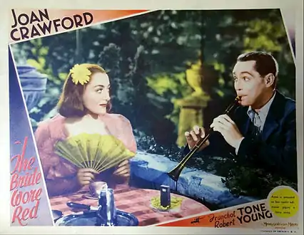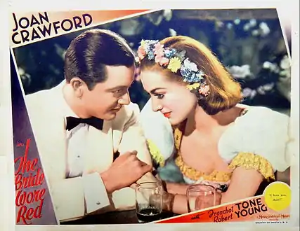 The Bride Wore Red is a 1937 American romantic comedy drama film directed by Dorothy Arzner, and starring Joan Crawford, Franchot Tone, Robert Young and Billie Burke. It was based on the unproduced play The Bride from Trieste by Ferenc Molnár.[2] In this "rags to riches" tale, Crawford plays a cabaret singer who poses as an aristocrat. This film is the last of the seven films that Crawford and co-star Franchot Tone, then her husband, made together.