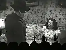 The film's setting, which appears to be a major city, is never identified in The Brute Man, but it has been suggested to be Manhattan, since that is where House of Horrors took place.[17] Commentators have noted similarities between The Brute Man and other films, including the Charlie Chaplin silent comedy City Lights (1931),[3][18] and the Universal horror film Bride of Frankenstein (1935).[3][13] City Lights, like The Brute Man, included a protagonist (Chaplin's Tramp character) who falls in love with a blind girl and seeks money for an operation to restore her eyesight.[3] Likewise, the scenes between the Creeper and Helen Paige share a similar premise and dialogue as the scenes between Frankenstein's monster and the blind hermit in Bride of Frankenstein. In both films, the protagonists are shunned by society based on their physical appearance, but find companionship in a blind loner who knows nothing about their deformities. In both instances, the protagonist is first drawn to their blind companions by music. The Creeper heard Helen playing the piano, while Frankenstein's monster heard the hermit playing the violin. Commentators have noted other similarities between the two films. For example, the Creeper smashes a mirror after looking at his misshapen face, much like the Monster lashes out at his reflection in a waterfall pool.[13]