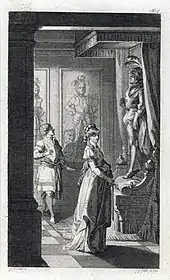 The first and most obvious connection to William Shakespeare is presented by Horace Walpole himself, in the preface to the second edition of Otranto, in which he "praises Shakespeare as a truly original genius and the exemplar of imaginative liberty, as a part of a defense of Otranto's design".[16] Elsewhere, Walpole's several allusions to works by Shakespeare further emphasize the connection he wishes to draw between his own work and Shakespeare's. For example, in Hamlet, "Hamlet's encounter with the Ghost becomes for Walpole a template for terror".[16]