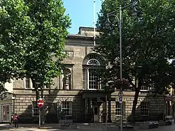 In 1817 the building was adapted to become the judges' lodgings; the conversion, which was undertaken by a local builder, Joshua Harrison, took two years to complete and once the building had passed into the ownership of the justices, it became known as the County Rooms.[2] Following the implementation of the Local Government Act 1888, which established county councils in every county, it also became the meeting place of Leicestershire County Council.[3][4] The building was in high demand and it was even used as a training facility by B Squadron, the Leicestershire Yeomanry at that time.[4]