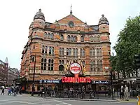 The Commitments began previews on 21 September 2013, at the Palace Theatre, London, before holding its official opening night on 8 October.[12] The cast consisted of Denis Grindel as Jimmy Rabbitte, Killian Donnelly as Deco,[13] Ben Fox as Joey Fagan,[14] Sean Kearns as Jimmy Rabbitte's father[14] and Sarah O'Connor, Stephanie McKeon and Jessica Cervi played The Commitmentettes.[14] A typical London performance ran 2hrs 25mins, including one interval of 15 mins.[15] The show closed on 1 November 2015.[16]