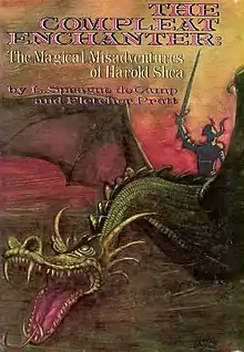 The Compleat Enchanter: The Magical Misadventures of Harold Shea is an omnibus collection of three fantasy stories by American writers L. Sprague de Camp and Fletcher Pratt, gathering material previously published in two volumes as The Incomplete Enchanter (1941) and The Castle of Iron (1950), the first two books in their Harold Shea series, with the essay "Fletcher and I", de Camp's paean to his deceased collaborator. The collection was first published in hardcover by Nelson Doubleday in 1975 as an offering for its Science Fiction Book Club, and was reissued in paperback by Del Rey Books in 1976. Minus the essay, it has more recently been combined with Wall of Serpents (1960), the third book of the series in the omnibus edition The Complete Compleat Enchanter (1989). This book had been left out of The Compleat Enchanter due to "considerations of space and …contractual considerations".[1] The stories in the collection were originally published in the magazine Unknown in the issues for May and August 1940 and April 1941.