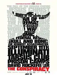 The Conspiracy is a 2012 Canadian found footage conspiracy thriller horror film written and directed by Christopher MacBride. It features actors Aaron Poole, James Gilbert, Alan C. Peterson, and Julian Richings.[2] It tells the story of two documentary filmmakers who set out to create a film about a conspiracy theorist named "Terrance G" who disappears during the making of the film. The two filmmakers are subsequently drawn into the world of a global syndicate whose aims and machinations are clouded in secrecy.