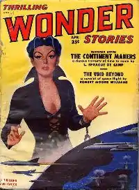 Cover of the April, 1951 issue of Thrilling Wonder Stories, illustrating The Continent Makers