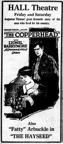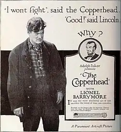The Copperhead is a 1920 American silent historical drama film based on a novel by Frederick Landis and a 1918 play by Augustus Thomas. The star of this film is Lionel Barrymore who won acclaim in the play version on Broadway, and who appeared in the play and this film with his first wife Doris Rankin.[1][2][3] A print of this film has been screened in recent years.