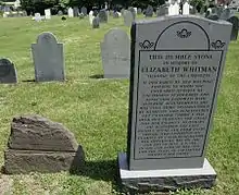 The new tombstone was erected in attempts to revive the community's interest in the tale of Elizabeth Whitman and Foster's novel. It is now included on the Literacy Trail of Massachusetts. With the growing popularity of Foster's novel, the true Elizabeth Whitman and the fictional Eliza Wharton became melded into one and are barely differentiable by most readers today.[6]