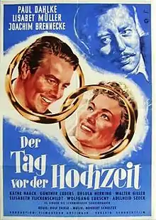 The Day Before the Wedding (German: Der Tag vor der Hochzeit) is a 1952 West German comedy film directed by Rolf Thiele and starring Paul Dahlke, Elisabeth Müller, and Joachim Brennecke.[1] It was shot at the Göttingen Studios. The film's sets were designed by the art director Walter Haag.