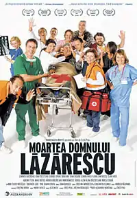 The Death of Mr. Lazarescu (Romanian: Moartea domnului Lăzărescu) is a 2005 Romanian dark comedy film by director Cristi Puiu. In the film an old man (Ioan Fiscuteanu) is carried by an ambulance from hospital to hospital all night long, as doctors keep refusing to treat him and send him away.
