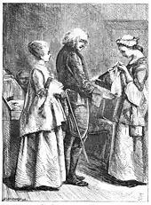 Alfred Lutz has argued that the poem generated two different types of reception.[32] Firstly, some readers admired Goldsmith's economic and social arguments, or at least reflected upon them in their own writings. Political radicals, such as Thomas Spence and John Thelwall quoted The Deserted Village in their own works, as did a number of other writers.[33] Secondly, readers and critics ignored the political content of the poem, focussing instead on Goldsmith's idyllic descriptions of Auburn.[34] This second type of reading was the most common.[35] Sebastian Mitchell states that some modern critics have seen the poem as appearing at a turning point in British culture, when public social and political opinions, and private emotional dispositions, diverged.[36] With the publication of texts such as Adam Smith's The Wealth of Nations (1776) shortly after The Deserted Village, political and economic discussion increasingly became the preserve not of poetry, but of a "scientific" version of political economy.[37]