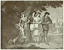 The Deserted Village, engraved by Francesco Bartolozzi after a painting by Francis Wheatley. This image was used in the edition of Goldsmith's poem published in 1800 by F. J. du Roveray.[7]