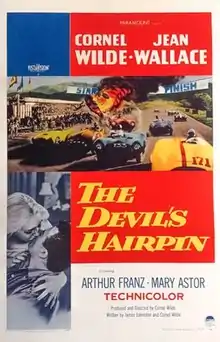 The Devil's Hairpin is a 1957 American sports drama film written and directed by Cornel Wilde who also stars alongside Jean Wallace and Mary Astor. It was filmed Technicolor and VistaVision, and distributed by Paramount Pictures. The plot revolves around about car racing.