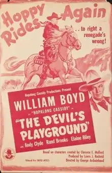 The Devil's Playground is a 1946 American Western film directed by George Archainbaud and written by Ted Wilson. The film stars William Boyd, Andy Clyde, Rand Brooks, Elaine Riley and Robert Elliott. The film was released on November 15, 1946, by United Artists.[1][2]