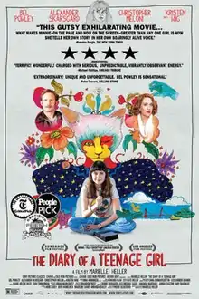 The Diary of a Teenage Girl is a 2015 American comedy-drama film written and directed by Marielle Heller, based on the hybrid novel of the same name by Phoebe Gloeckner. It stars Bel Powley as a 15-year-old girl who becomes sexually active by starting a relationship with her mother's boyfriend. It also stars Kristen Wiig, Alexander Skarsgård, Christopher Meloni, Quinn Nagle, and Austin Lyon. It premiered at the 2015 Sundance Film Festival and had a limited release on August 7, 2015 by Sony Pictures Classics.[2]