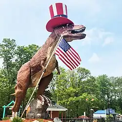The Dinosaur Place is a family-owned 60-acre dinosaur-themed adventure park located in Nature's Art Village in Montville, Connecticut.[1][2][3][4] The park features 60 life-sized dinosaurs on 1.5 miles of trails, playgrounds, a custom-made play zone "T-Rex Tower", splash pad, a maze and several additional attractions.[5][6]