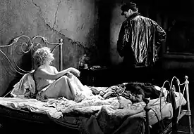 A highly collaborative work, The Docks of New York benefited from the screenwriting of Jules Furthman, such that “the director’s vision...cannot be easily distinguished from Furthman’s scenarios."[3] Scripting for Sternberg's most celebrated movies, among them Morocco (1930), Shanghai Express (1932) and Blonde Venus (1932) was provided by Furthmann.[4] Sternberg also benefited from the cinematography of Harold Rosson, who was inspired by the director's “fresh, innovative ideas.” Art director Hans Dreier, formerly of Germany's UFA, created the evocative set for the Sandbar saloon with its subjective demimonde atmosphere of Sternberg's New York waterfront. Dreier would subsequently oversee studio production design for decades as head of Paramount's art department.[5]