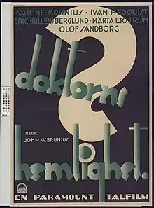 The Doctor's Secret (Swedish: Doktorns hemlighet) is a 1930 drama film directed by John W. Brunius and starring Ivan Hedqvist, Pauline Brunius and Olof Sandborg.[1] It was produced and distributed by the Swedish subsidiary of Paramount Pictures at the company's Joinville Studios. It was one of a large number of multiple-language versions shot at Joinville during the early years of the sound era. It is a Swedish-language remake of the Hollywood film The Doctor's Secret, based on the play Half an Hour by J.M. Barrie. It is now considered to be a lost film.[2]