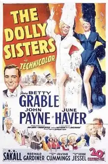 The Dolly Sisters is a 1945 American Technicolor biographical film about the Dolly Sisters, identical twins who became famous as entertainers on Broadway and in Europe in the early years of the 20th century as Jennie and Rosie Dolly (Yansci and Roszika Deutsch), Hungarian-born entertainers. It starred Betty Grable as Jenny, June Haver as Rosie and John Payne as Harry Fox.