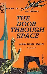 The Door Through Space is a 1961 science fiction novel by American writer Marion Zimmer Bradley. An expansion of Bradley's story "Bird of Prey", which first appeared in the May 1957 issue of the magazine Venture, it is her first novel, and was published by Ace Books, bound tête-bêche with Rendezvous on a Lost World by A. Bertram Chandler.