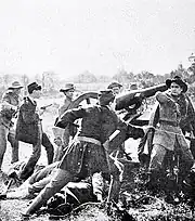 Kalem's efforts to collect military items actually used during the Civil War or that were generally available at the time of the conflict earned the company a reputation for excellence and authenticity among audiences and with film reviewers, one of whom in 1912 specifically praised The Drummer Girl of Vicksburg for "showing some of the most realistic war scenes ever portrayed on the screen."[14] Even army veterans in theater audiences and enthusiasts for militaria expressed their admiration for Kalem's attention to detail, especially when comparing its productions to those being presented by other studios. In its September 1912 issue, The Motion Picture Story Magazine shares with its readers a letter the trade publication received from G. L. Eskew of Charleston, West Virginia: