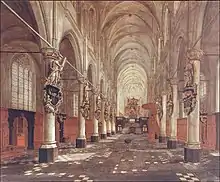 The high altar of St. Walburga rises high above an ancient Holy Sepulchre chapel restored in 1613. Thus, Rubens' "Erection of the Cross" reenacts the journey from the Jerusalem Church of the Holy Sepulchre to the erection of the Holy Cross in the Golgotha Chapel located above.[7][6]