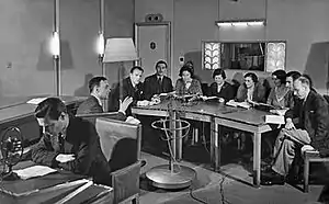 During the 1930s The Epilogue was transmitted from Studio 3E in Broadcasting House in London. However, during World War II the BBC moved much of its operations out of London to Bedford where the BBC Epilogue was transmitted live on the Home Service and Forces Programme at the end of each day's radio programmes at about 10.30pm. At first it was broadcast from St Paul's Church in Bedford but because of the problems caused by blacking-out the church windows the programme was later relocated to the Bunyan Chapel studio.[3]