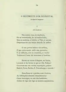 - ↑ Or, O Sentimento d'um Occidental, as it was spelled in the first edition, published before the 1911 spelling reform.